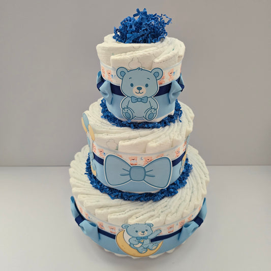 Adorable Baby Blue Teddy Bear Diaper Cake