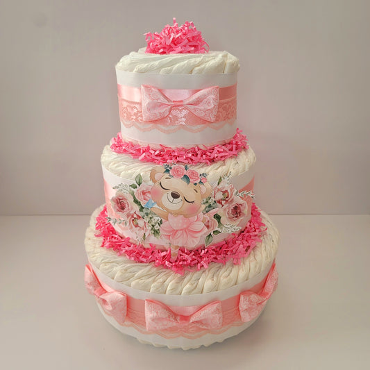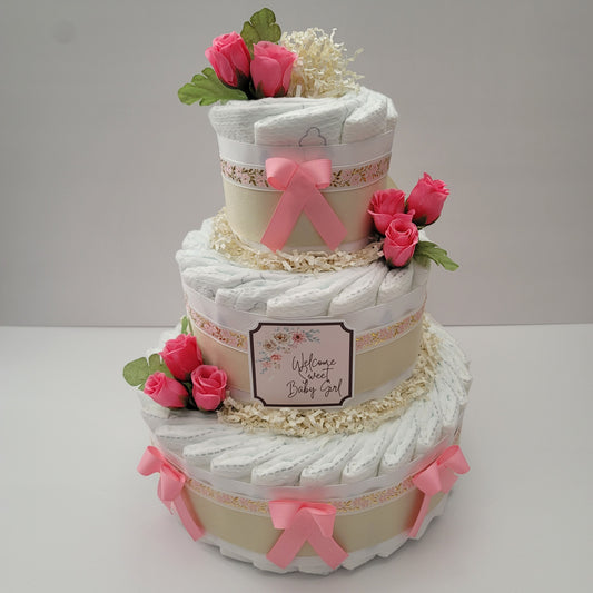 Elegant Pink Diaper Cake for Girls